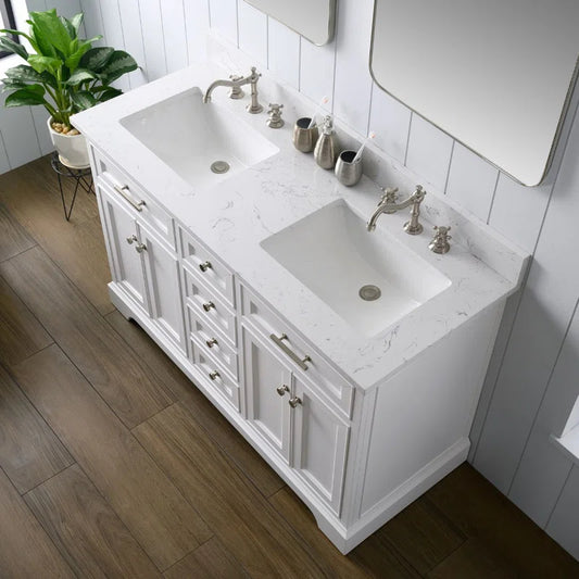Gavino 60'' Double Bathroom Vanity with Engineered Stone Top