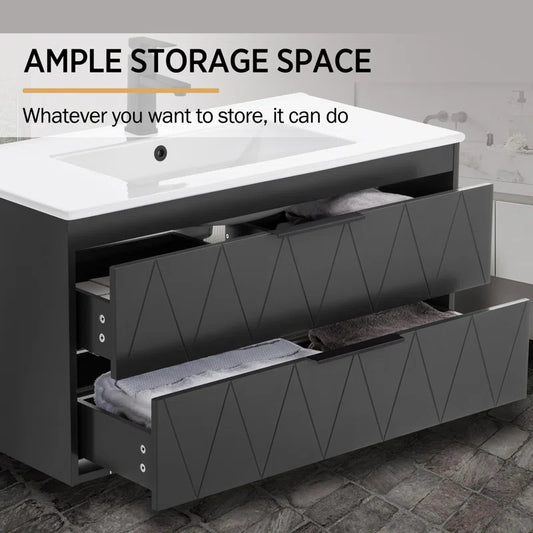 Annedoris 36" Floating Bathroom Vanity with Sink – Wall-Mounted Wood Cabinet with Ceramic Top, Soft-Close Drawers & Modern Single Vanity Design